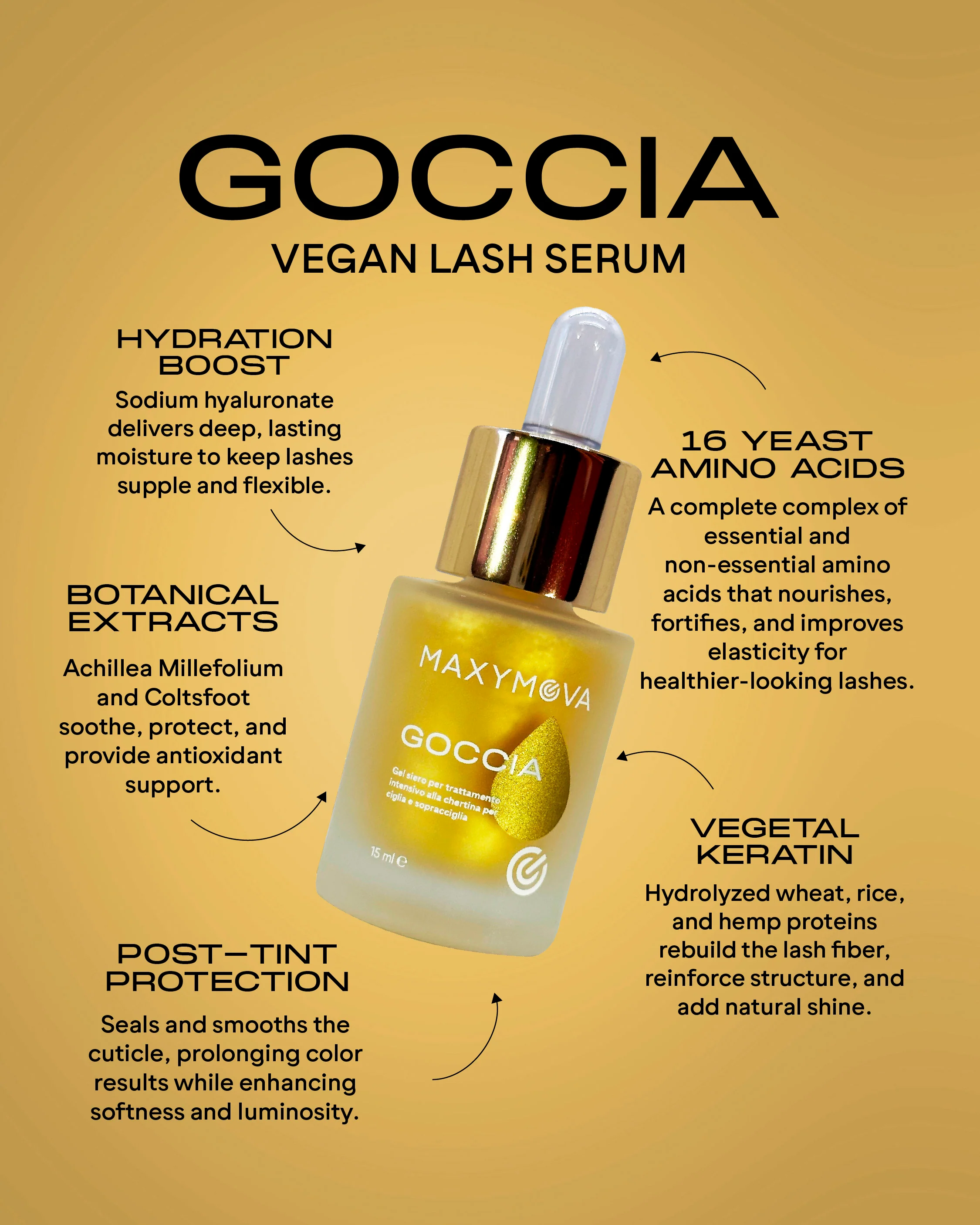 Goccia es un sérum reestructurante que se utiliza durante el tratamiento de laminación para nutrir, hidratar y aumentar el brillo de las pestañas y las cejas. El procedimiento tiene como objetivo fortalecer las pestañas y ayuda a reparar los daños, retener la humedad y reducir la rotura, dejando las pestañas suaves, sedosas, flexibles y brillantes.
